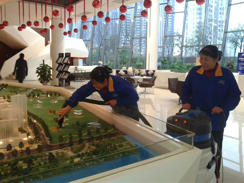 保潔員對沙盤進行保潔