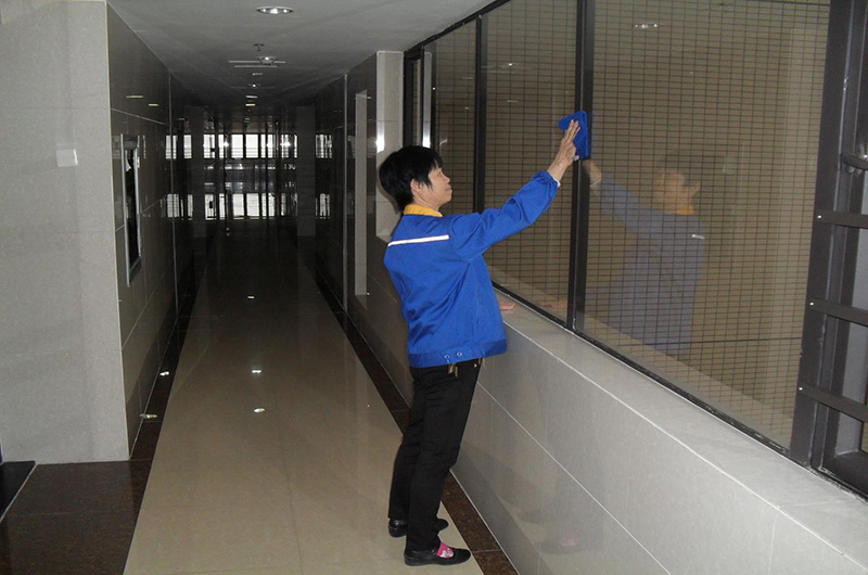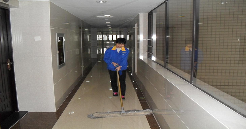 保潔員在樓道現場保潔